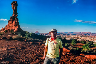 In 1998, I joined a group of my biking buddies for a five day/four night biking trip to the Maze in the Canyon Lands National Park, led by the Kaibab Mountain/Desert Tour company. They provided a fully supported tour -- they carried our gear in a four-wheel support vehicle from camp site to camp site, cooked the meals and met us on the trail for lunch. Our responsibility was to put up our tent in the evening, take it down in the morning, and pack up our gear to be transported to the next campsite.