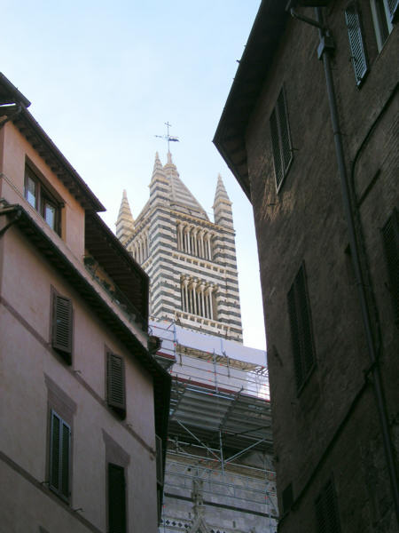 Approaching the Duomo via Siena's narrow, medieval streets.